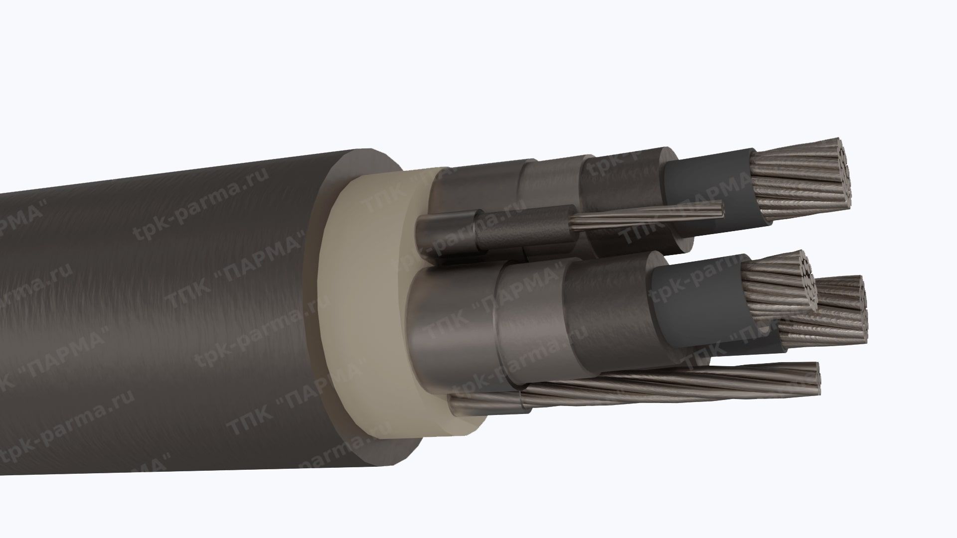 1. Три многопроволочные медные лужёные круглые основные жилы с площадью номинального поперечного сечения 120 мм2, соответствующие 5 классу по ГОСТ 22483-2012.
